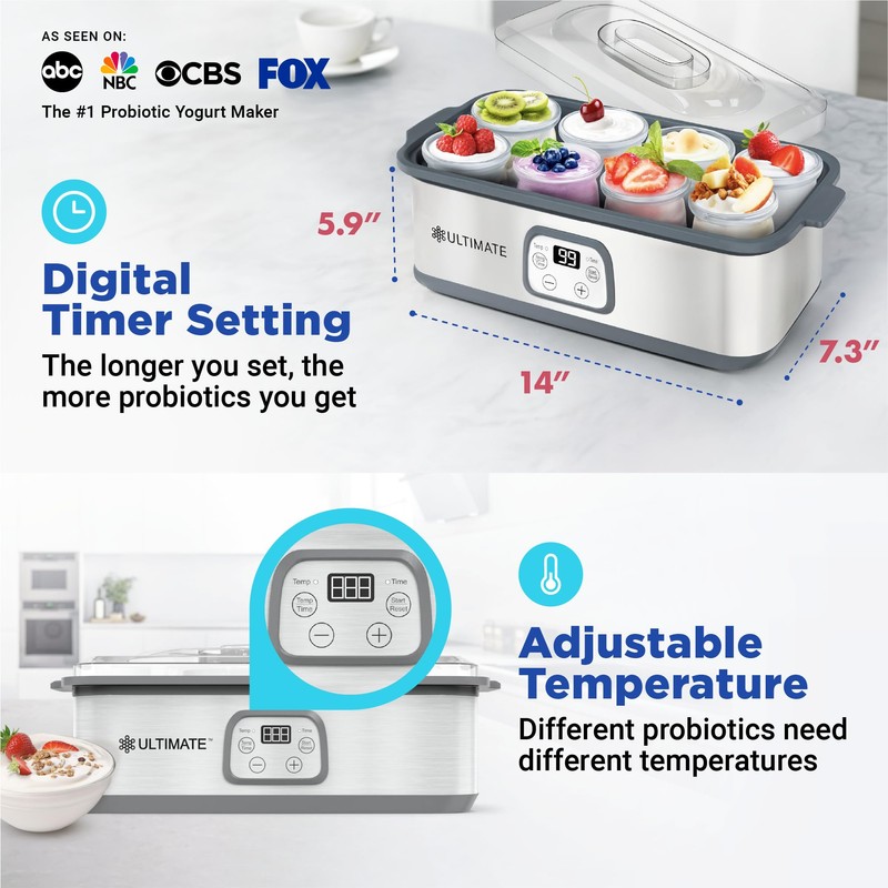 - AS SEEN ON ABC, NBC, CBS & FOX with THOUSANDS of GLOWING REVIEWS - The Ultimate Probiotic Yogurt Maker is trusted and used by over 60,000 happy customers. We pride ourselves on excellent quality and service. If you're not fully satisfied, we offer a FREE LIFETIME MANUFACTURER'S WARRANTY. See why others are raving about their Ultimate Yogurt Makers. Get yours risk-free today!