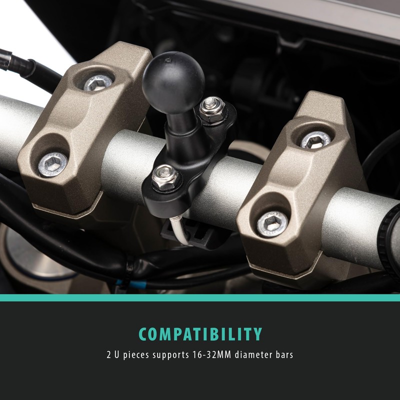 Ultimateaddons Motorcycle U-Bolt Mount - Secure Handlebar Attachment with 3-Prong Connection - Fits 16-32mm Bars