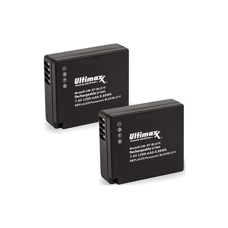 Ultimaxx BLG10 Extended Life Batteries (2-Pack) (1200mAh) for Panasonic Lumix DC-GX9, DC-LX100 II, DC-ZS200, DC-ZS70, DC-ZS80, DMC-GX80, DMC-GX85, DMC-ZS60, DMC-ZS100, DMC-GF6, DMC-GX7K, DMC-LX100K