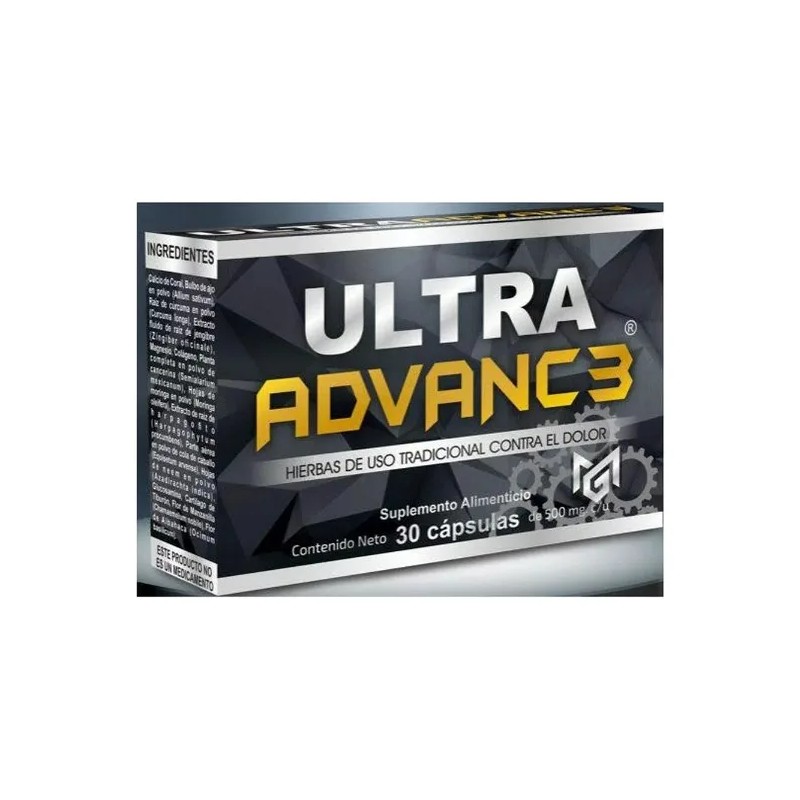 Ultra Advanc3 Con Magnesio es un suplemento nutricional de alta calidad, diseñado para apoyar tu bienestar general. Cada cápsula contiene una mezcla poderosa de ingredientes naturales, incluyendo calcio de coral, bulbo de ajo en polvo, raíz de cúrcuma y extracto de jengibre, que trabajan en sinergia para promover la salud ósea y articular. Este producto es libre de gluten y lactosa, lo que lo hace apto para personas con restricciones dietéticas. Además, es vegano, lo que garantiza que se adapta a diferentes estilos de vida. Con un peso neto de 15 g y un total de 30 cápsulas por envase, es ideal para quienes buscan un suplemento práctico y efectivo. Se recomienda su uso a partir de los 18 años, y su formato en cápsula facilita la ingesta diaria. Ultra Advanc3 es perfecto para quienes buscan un apoyo nutricional tanto en actividades deportivas como en la vida cotidiana.