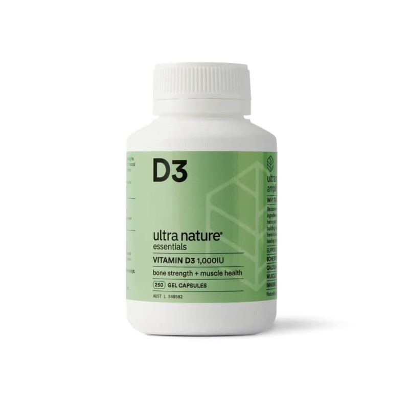 Ultra Nature Essentials Vitamin D3 supplements increase Vitamin D levels better than D2 supplements and offers many health benefits including strengthening bones and muscles, boosting immunity and reduces inflammation.