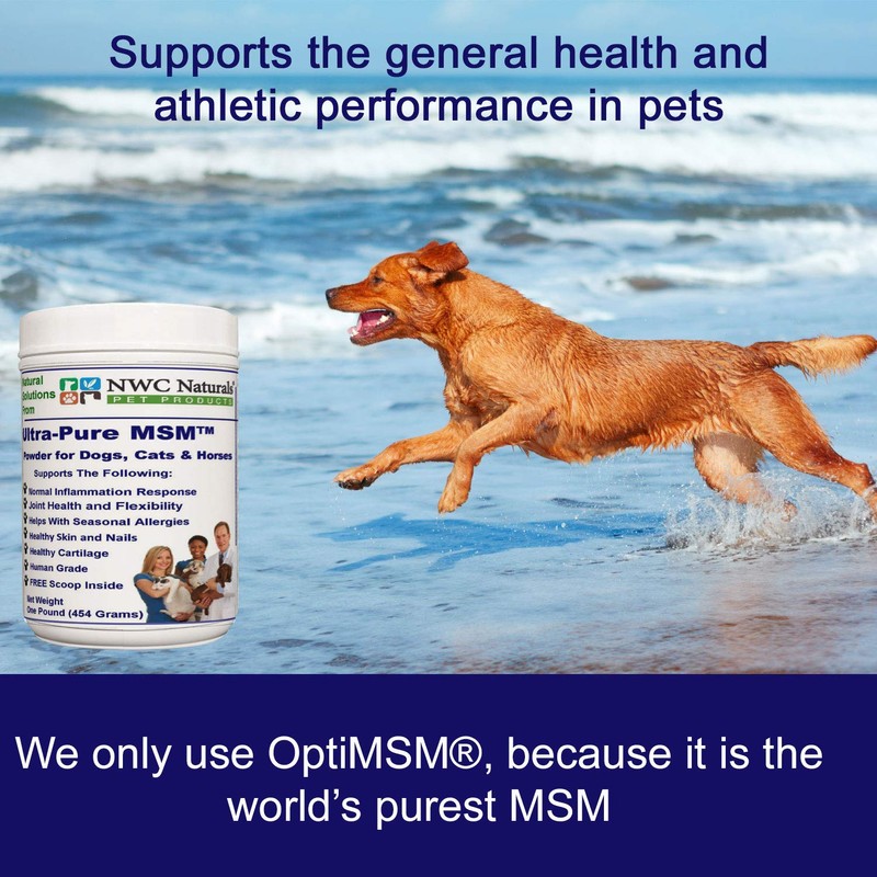 - PREMIUM JOINT SUPPLEMENT: NWC Naturals Ultra-Pure MSM Powder for Pets supports joint, cartilage and connective tissue to sustain an active lifestyle for your dogs, cats, and horses. Ultra-Pure MSM will sustain the general health and athletic performance your pet needs.