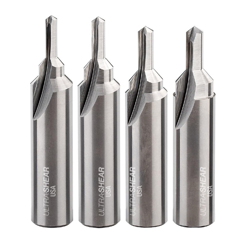 Ultra-Shear Countersink Slotting Router Bits, 4 Piece Set, 2 FL, USA Made, Solid Carbide, Great for Making Screw Blocks - US5CS-4PC