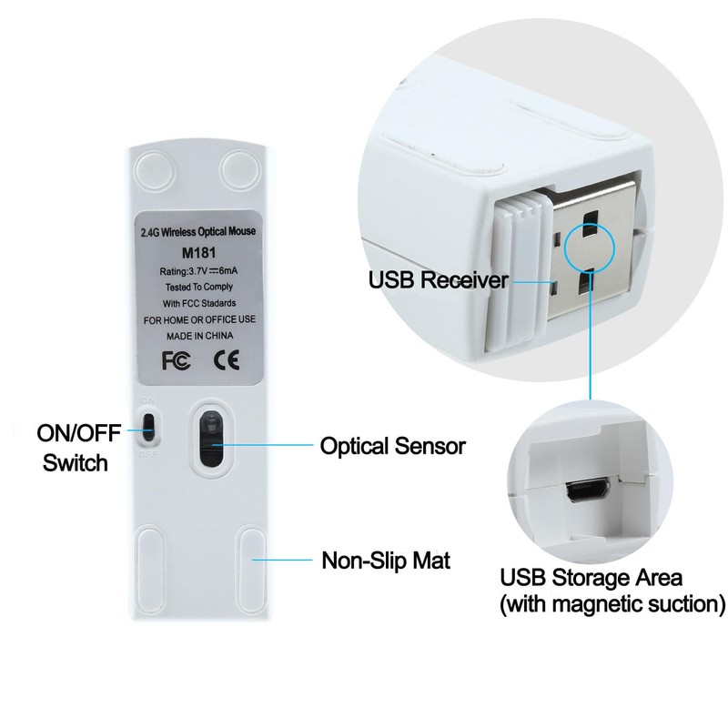 - ➷【Plug and Play】Plug the USB receiver into the USB port of your computer, and you can work or use your computer anytime, anywhere. Note (There is a receiver storage position at the bottom of the mouse) and don't need to worry about the loss of the USB receiver. The location where the receiver is placed has a magnetic function