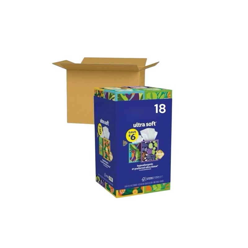 - 🧻 Gentle & Durable – 3 layers of softness and strength, ideal for delicate skin and frequent use. 🌿 Hypoallergenic & Unscented – Free from dyes, perfumes, and lotions—perfect for sensitive users. 📦 Decorative Cube Boxes – Pack of 18 stylish cube boxes, each with 72 premium tissues. 👃 Year-Round Use – Great for cold, flu, and allergy seasons or everyday personal care. 🌲 Eco-Conscious Choice – Made with responsibly sourced paper from managed forests.