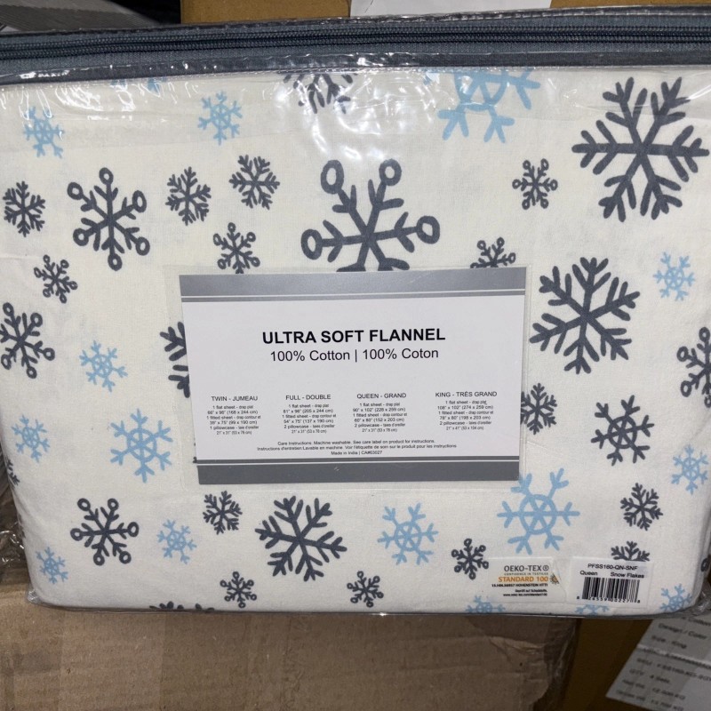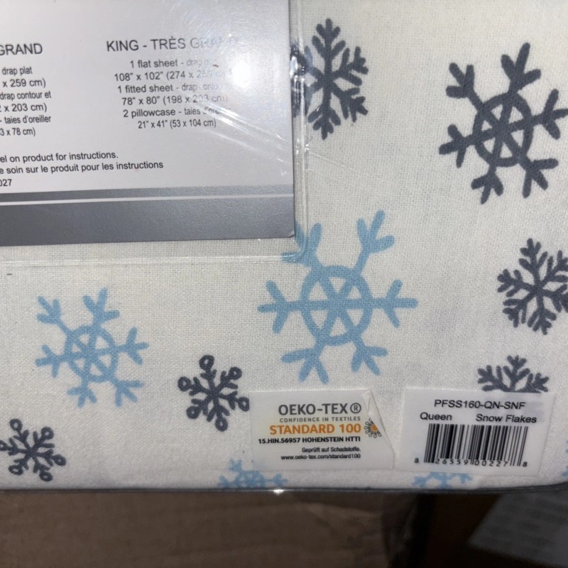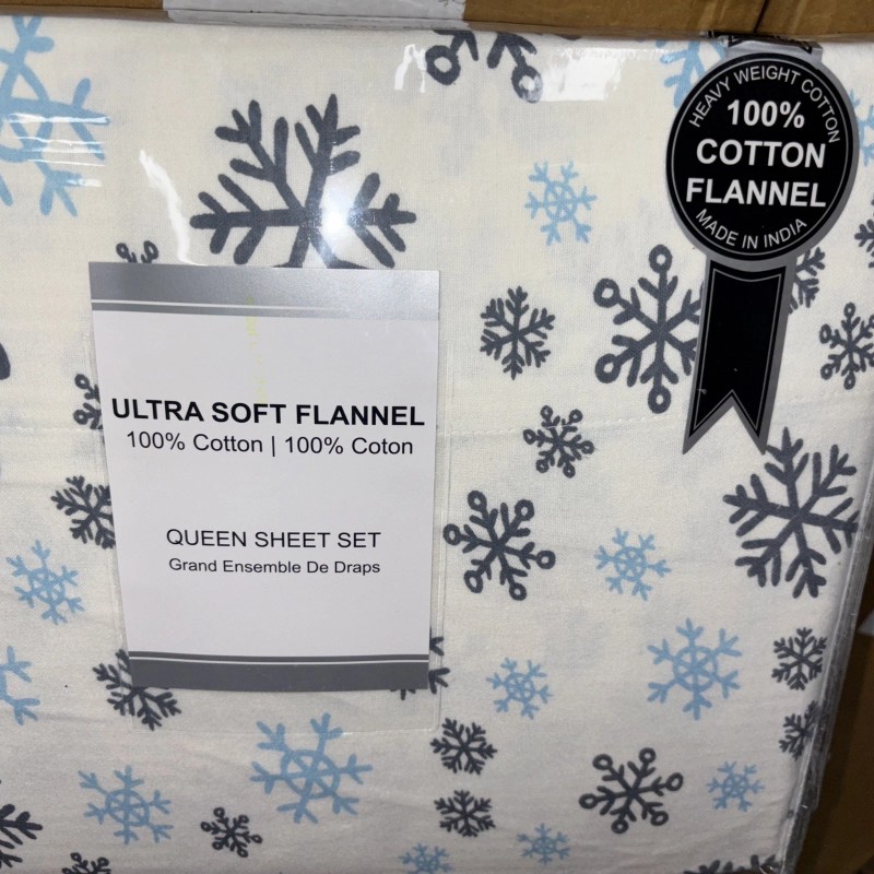 ULTRA SOFT FLANNELS QUEEN Flannel Sheet Set 100% Cotton Cozy, ULTRA Soft SNOW FLAKE OEKO TEX STD 100
