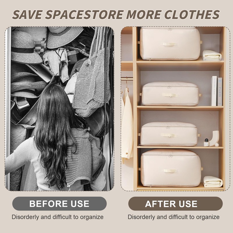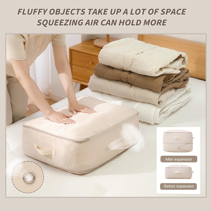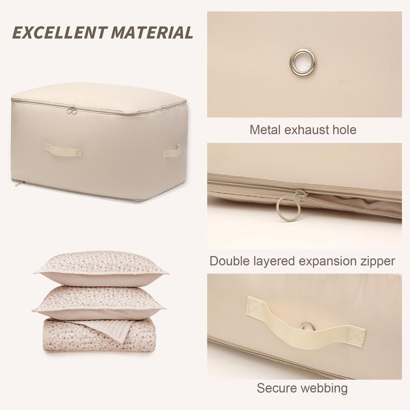- Unique Design The quilt storage bag is designed with a top opening, the top zipper can be fully opened for quick and easy access. The double compression zipper saves more space.