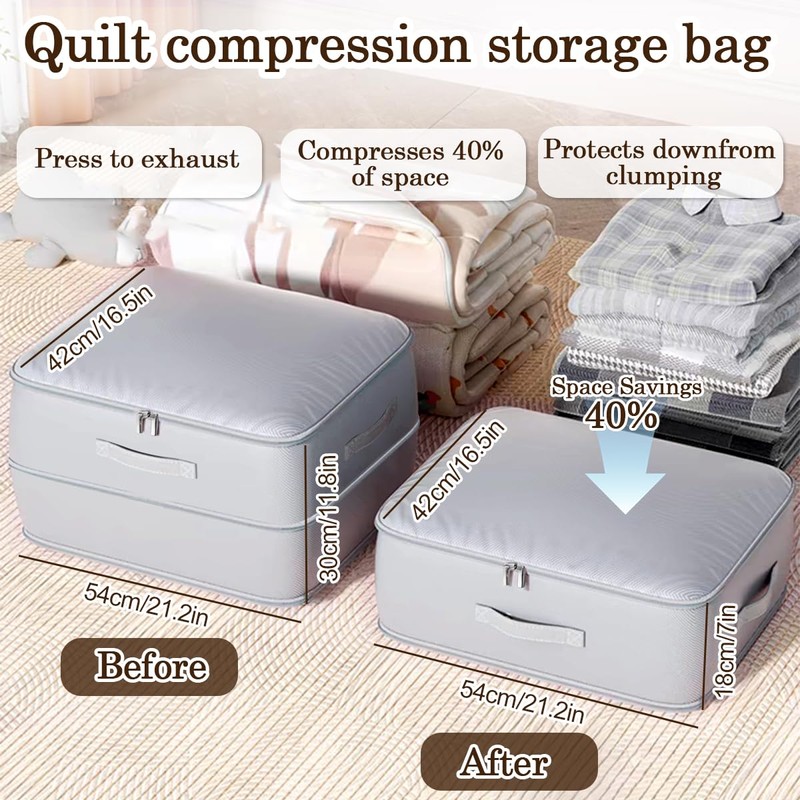 • MULTIPURPOSE SELF COMPRESSIVE ORGANIZER Perfect for storing and organizing winter blankets, duvets, king and queen size duvets, sweaters, quilts, sheets, baby items, etc.; Hassle-free storage without vacuum, with large capacity yet compact, safe to store in the attic or basement.