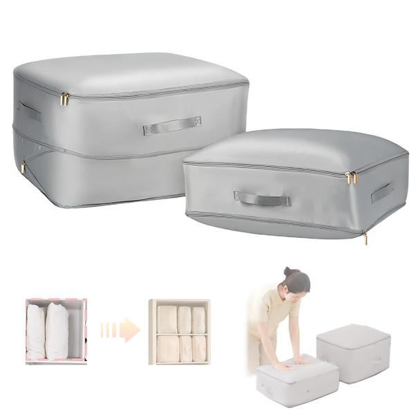 Ultra Space Saving Self-Compression Organizer, Space Saving Bags, Compression Storage Bags Packaging Bags,Compression Bags for Comforters, Blankets, Bedding,Duvet (Gray- XL)
