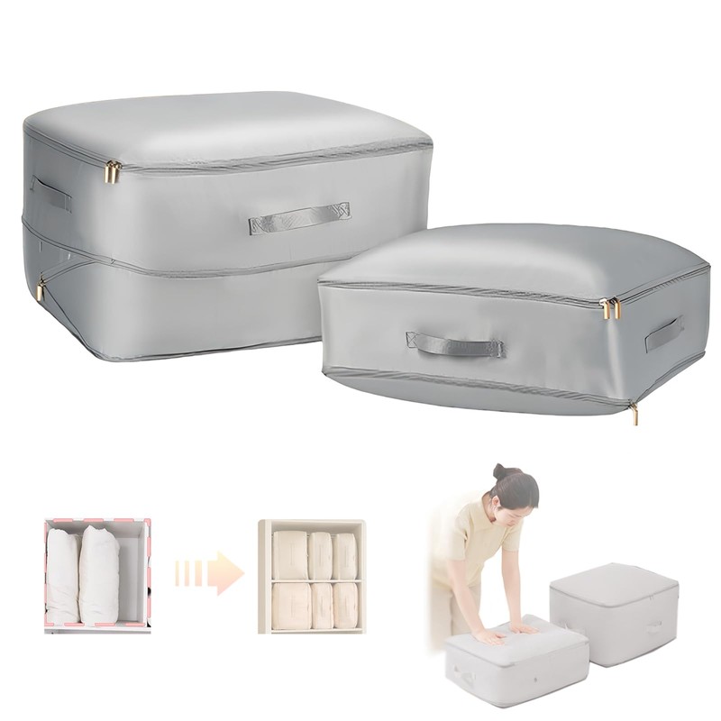 - 【Creative Design & Save Space】 - Double/triple zip design, easily compresses up to 40% without vacuum. Side vents retain air inside, compression organiser while protecting the down fibre structure. It can be separate storage and stacked to create extra space in your home and luggage.