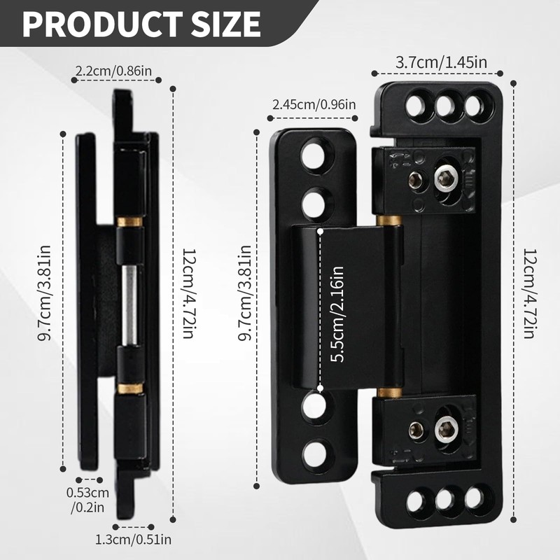 - 【Sleek Ultra-Thin Profile】:Designed with a minimalistic, slim structure, these invisible door hinges require only shallow recesses, making them incredibly easy to install while preserving the integrity of your door. Ideal for achieving a seamless, modern look.