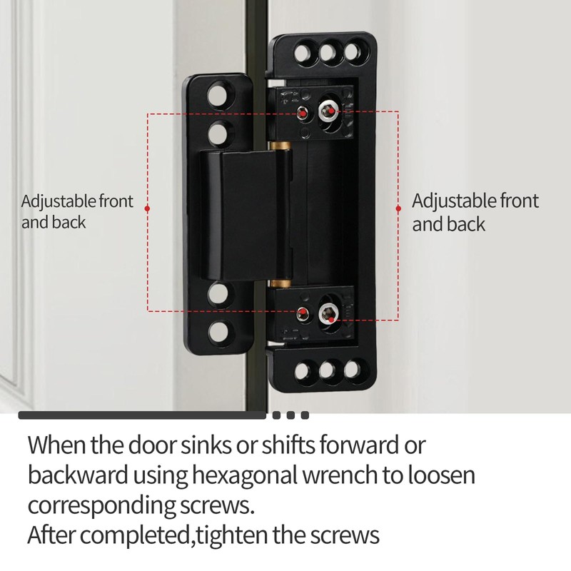 - 【Precision Adjustable Mechanism】:Featuring a two-way adjustment system, these concealed hinges allow fine-tuning both vertically and horizontally through built-in hex screws—perfect for achieving flawless alignment between the door and frame.