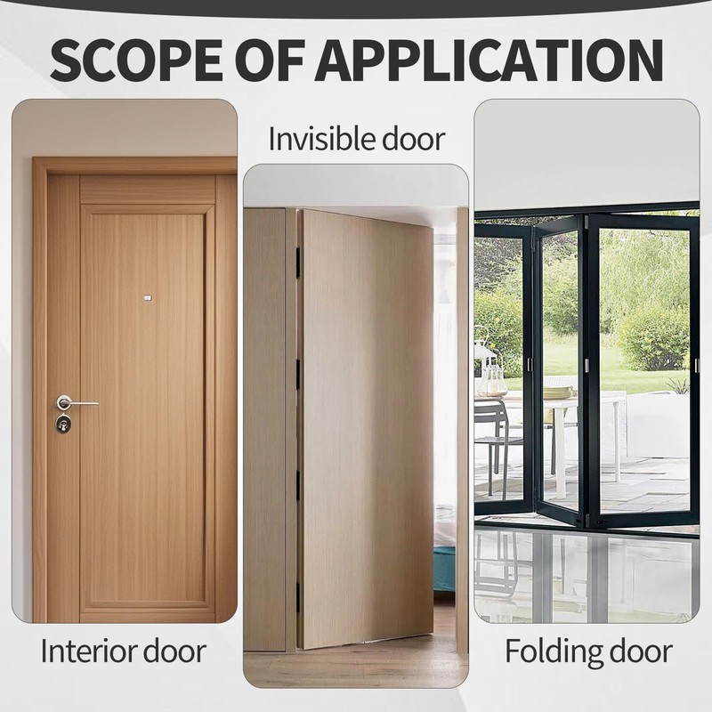 - 【Fully Concealed Design:】:When the door is closed, the hinges are virtually undetectable, creating a clean and uninterrupted surface. Perfect for hidden or secret doors, this design not only enhances visual appeal but also adds a level of security by preventing access to hinge hardware from the outside.