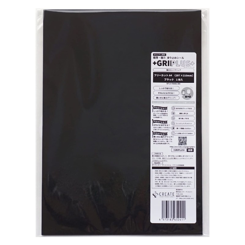 Ultra Thin, Strong Non-Slip Seal, GRIPLUS Free Cut, A4 Size (Black, 1)