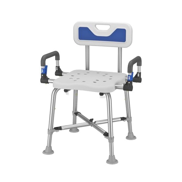 - 【Safety and Wide Design】This bariatric shower chair is wider for use by individuals who are overweight. The armrests can be flipped up to assist with side bathing and sitting down or getting up. It also includes a non-slip, removable, and easy-to-clean seat cushion, with 4 anti-slip rubber feet for added stability. The seat has many drainage holes to help with water drainage during showers, ensuring maximum safety.