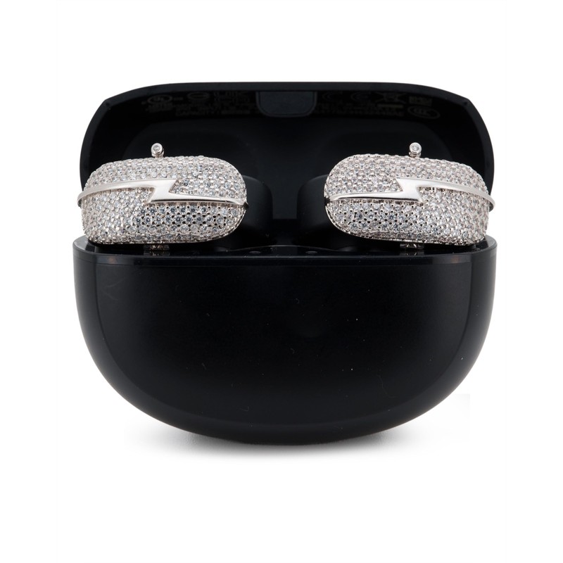 UltraCareX Lightning Protective Cover for Bose Ultra Open Earbuds, Made with Cubic Zirconia Stones, Easy to Remove, Includes Carrying Box (Silver)