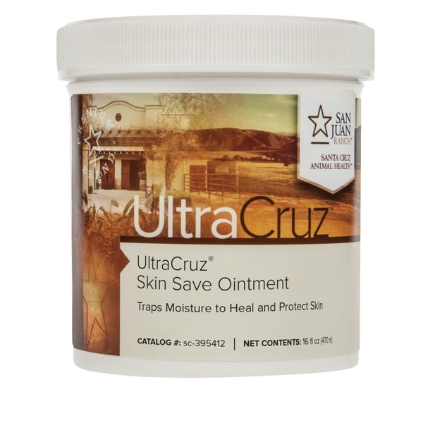 Ultra Cruz Skin Save Ointment is an ointment for all skin disorders and is safe to use on all animals. It can be used for scrapes, burns, tender hooves, rain rot, to promote hair growth, and to stop itching, as well as preventing proud flesh. In addition it can be used to treat ear problems.
