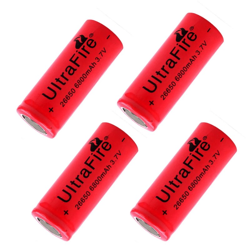 UltraFire 4pcs 26650 Battery UltraFire Li-ion Rechargeable 3.7V Flat Top Batteries Cell