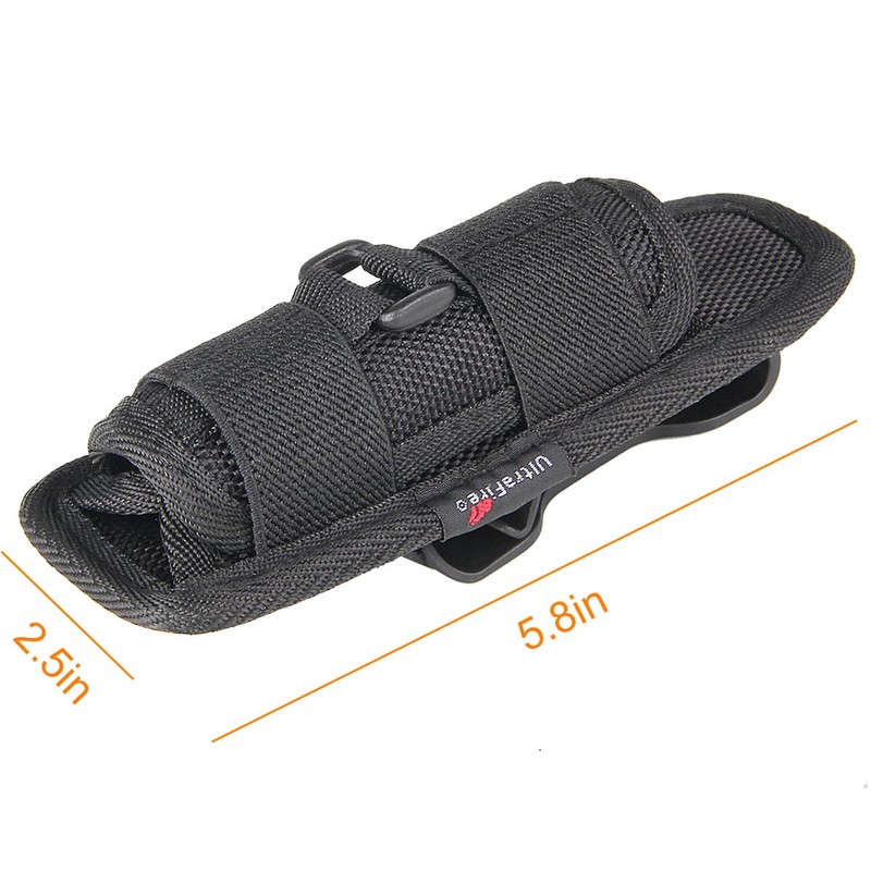 1) Our durable, ballistic nylon clip-on torch holster extends to hold flashlights of almost any size securely and comfortably by your side. Made from ballistic nylon, molded EVA foam insulation and elastic side walls that expand, this holster is a signature combination of ULTRAFIRE's ingenious design and rugged build.