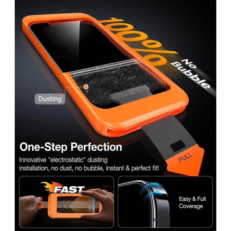 - Easy-On InstallationComes with everything you need with Innovative Automatic Instant Absorption Technology, making the installation is just effortlessly easy in seconds. Anyone can be an expert in applying this Screen Protector without Air Bubbles or Imperfections. Plus: our specialists are always online for you. Say goodbye to the annoying flaws!