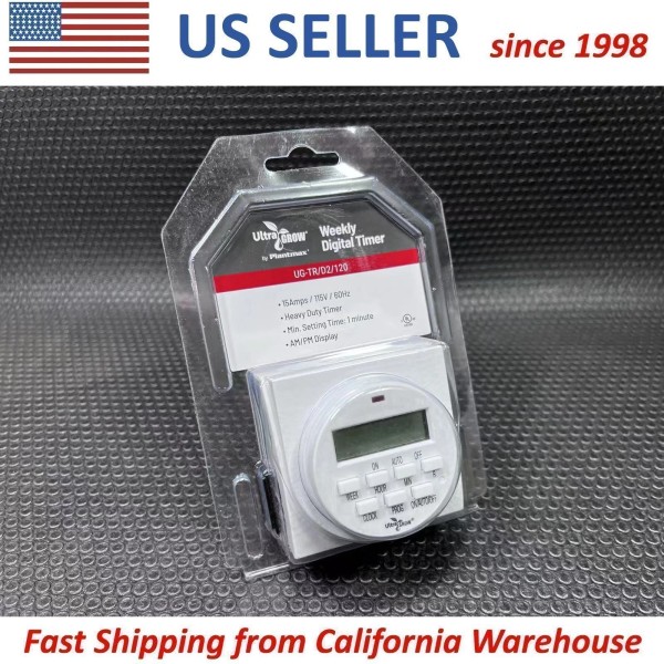 UltraGrow Heavy Duty Digital 7-Day Timer Double 3-Prong Outlet Plug LCD Display