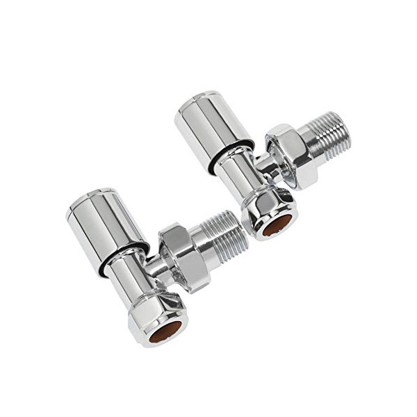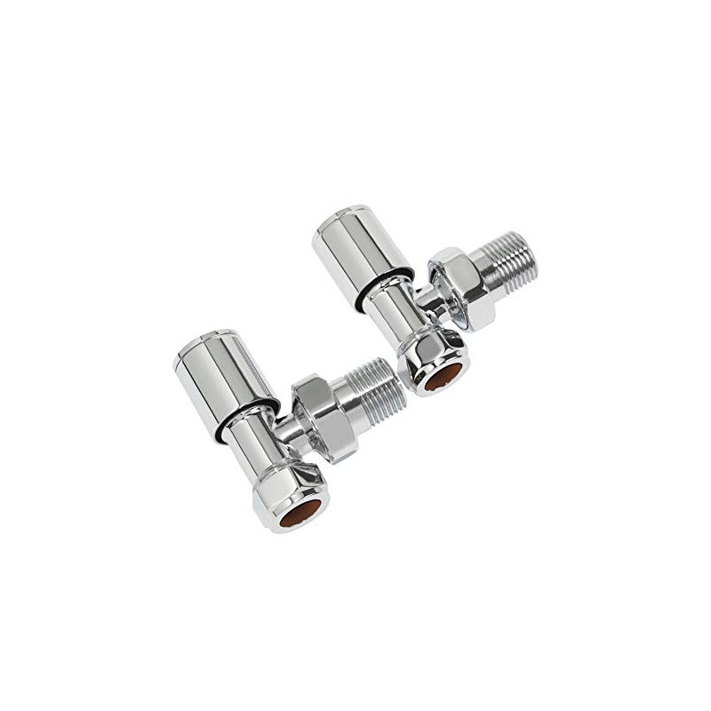 Ultraheat Round Angled Manual Radiator Valve + Lockshield Set 15mm Chrome (Angled)