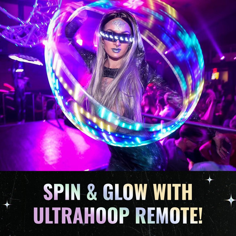 Captivate Audiences with the Ultimate UltraHoop Remote Hola Hoop Adult Get ready to wow the crowd with our mesmerizing UltraHoop Remote light up hula hoop adult! Featuring 60 ultra-bright RGB rechargeable LED light and remote-controlled color-changing modes and patterns, these beginner hoola hoop are perfect for showcasing your flow skills and tricks like never before. Crafted from durable HDPE material, the rechargeable LED light hoops are smooth and lightweight, making it easy to perform graceful and fluid routines effortlessly. Feel the natural connection between you and the hoola hoop fitness as it enhances your dancing experience and captivates the audience with every move. Take your performances to new heights with non-stop swirling from dusk till dawn, thanks to the hoola hop’s rechargeable batteries. The hoola hoop bag includes a hoop collapsible design, user-friendly remote control, rechargeable battery, charger, and comprehensive instructions, ensuring a seamless flowy dancing experience. No more distractions during your performances — the adult hoola hoop features convenient snap button holes for effortless powering on and off. Focus solely on perfecting your moves and mesmerizing the audience with this cutting-edge LED hoola hoops for kids! Illuminate any event and become the star of the show with our enchanting light up hoola hoops. The child hoola hoop’s captivating light display guarantees to leave a lasting impression on everyone who witnesses your breathtaking performances. Product Features: Remote-controlled hoops 60 ultra-bright RGB LEDs High-quality HDPE Lightweight Removable & rechargeable battery Ideal for beginner to advanced flow artists Collapsible Complete LED hoop kit Available size variations: 26” x 5/8" OD 28” x 5/8" OD 30” x 5/8" OD 32” x 3/4" OD 34” x 3/4" OD 36” x 3/4" OD