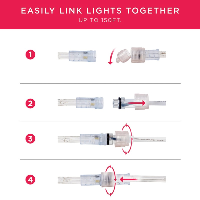- Linkable – Combine additional sets for up to 150ft. of light — available in lengths of 16ft. (54503), 25ft. (54504) and 50ft. (54505)