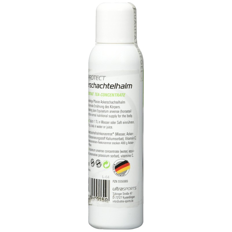 • Field horsetail concentrate from Ultra Sports - gluten free and vegan. Recommended intake: stir 1 teaspoon of horsetail concentrate daily into a glass of water or juice spritzer