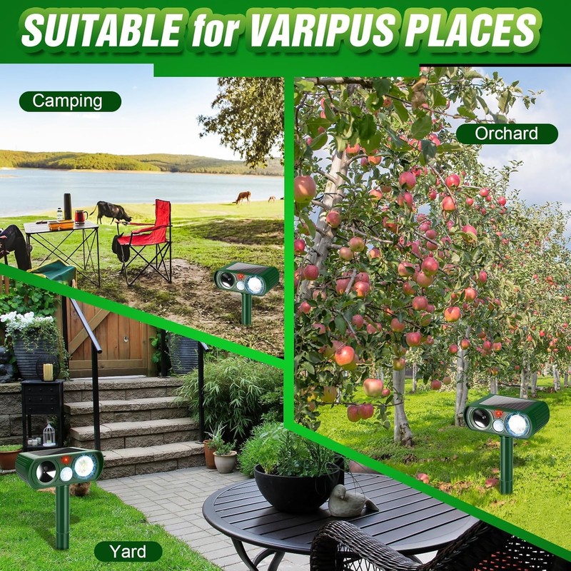 Ultrasonic Cat Deterrent Outdoor, Solar Powered Deterrent with Motion Sensor and Flashing Lights Solar Farm Garden Yard Device,Dogs,Cats,Birds