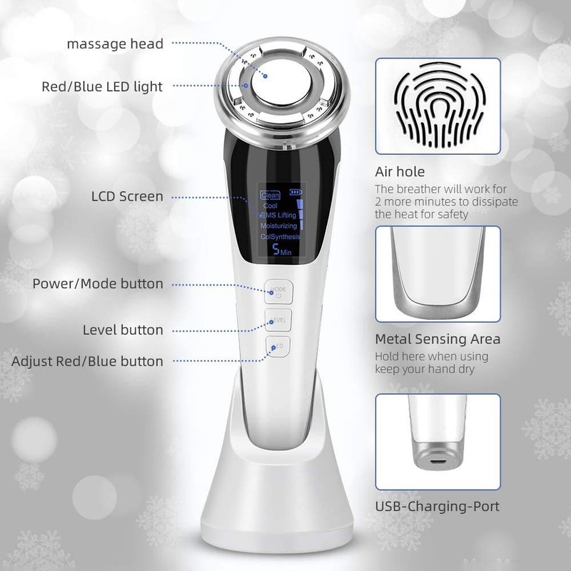 - Multifunctional ultrasonic beauty device: 5 types in 1: hot and cooling care, ion introduction, ion dissipation, photon therapy, EMS microcurrent, sound massage. These 5 skincare modes allow you to relax and beautify yourself in your home. Ultrasound can directly reach the deep skin layer, stimulate and warm the deep subcutaneous cells, improve skin metabolism and make the skin healthier.