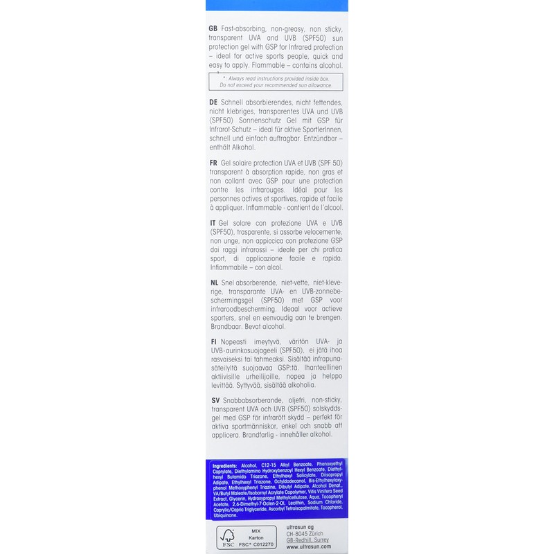 ultrasun Very High SPF 50 Sunscreen Sun Protection Sports Gel, 200 ml