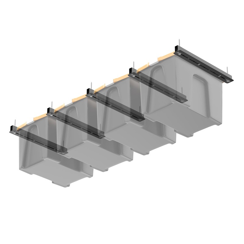 Convenient Installation: This ceiling rack mounts easily to 16-inch or 24-inch ceiling studs and comes with detailed instructions and hardware. It fits 7-27 gallon storage bins, offering a simple and efficient solution for maximizing ceiling storage