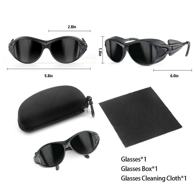 - [Laser Glasses] : Optical density: OD 3+.Visible light transmittance<10%.Broad spectrum protection, block UV, Blue, Red and Infrared Laser Light, for laser hair removal and laser beauty treatment.