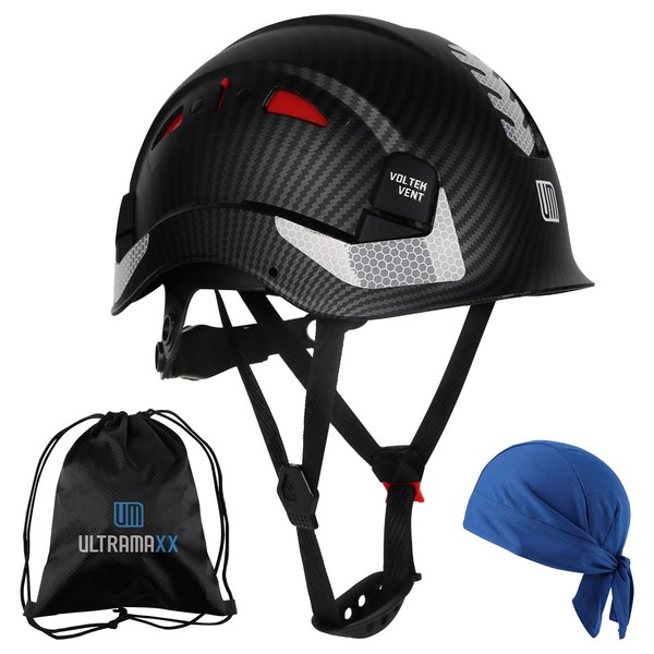 UM ULTRAMAXX Safety Helmet Hard Hat, ANSI Z89.1 Approved Lightweight Vented Work Helmet, 6-Point Adjustable Ratchet Suspension Hardhat for Industrial and Construction (Black Carbon Fiber)