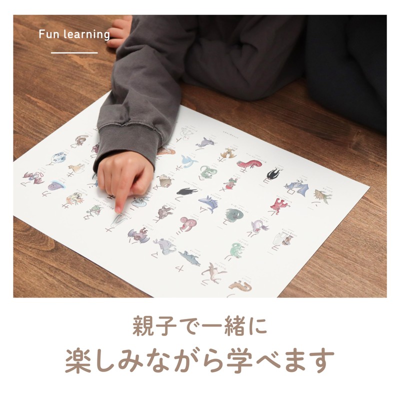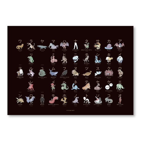 • An adorable katakana table with an unconfirmed creature illustration. Enjoy learning while having fun