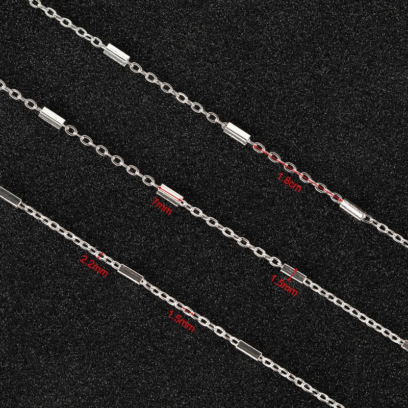 - Chain Link Size- The tube bar size is about 7mm long and 1.5mm wide, length between two tubes is about 1.8cm, the size of the cross link chain is about 2.2mm long, 1.5mm wide and 0.3mm thick; the diameter of the open jump ring is about 4mm, 0.7mm thick; lobster clasp length is about 10mm. Proper size and sufficient quantity jewelry findings will meet any different jewelry-making needs.