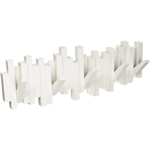Umbra 318211-660 Sticks Multi Rack – Modern, Unique, Space-Saving Hanger with 5 Flip-Down Hooks for Hanging Coats, Scarves, Purses and More, White