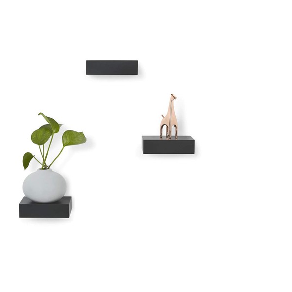 Umbra 325560-040 Showcase Shelves Set Gallery Display, Floating Wall Shelf for Small Objects and More (Set of 3), Black