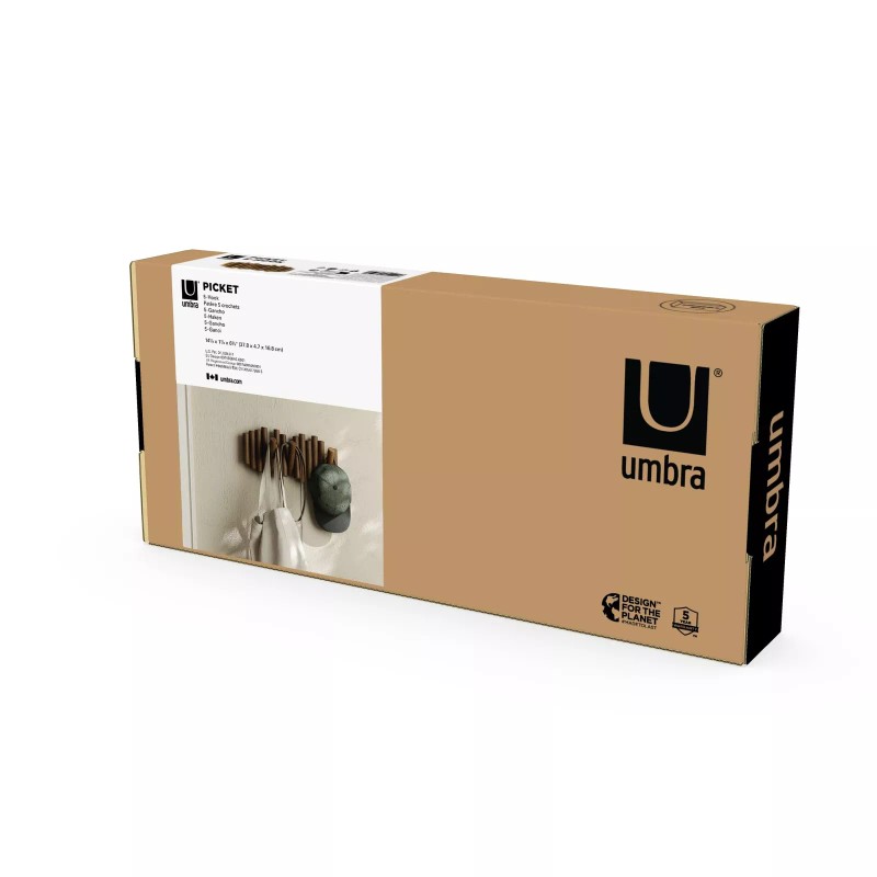 Additional storage is always useful, but when it fits seamlessly into your space and can be hidden away when not in use, it doesn’t get any better. Introducing Picket Multi-Hook from Umbra At first glance you might not even realize that Picket is handy wall mounted coat rack thanks to its beveled pine wood dowels and beautiful shape. It has five flip hooks, each holding up to 5 lbs. , which can be flipped-up when not in use; creating a seamless profile that resembles modern wall art. For additional storage try hanging two or more Pickets side by side to create an eye-catching decor piece that instantly transforms in to additional storage for all your hanging needs. Picket measures 15 x 6. 5 x 1. 75 (38. 1 x 16. 5 x 4. 4 cm) and comes with mounting hardware that is easy to install. For a unique space saving wall hook that doubles as modern wall art, order Picket from Umbra today. About Umbra: A global product design company providing original, modern, casual and functional design for the home.