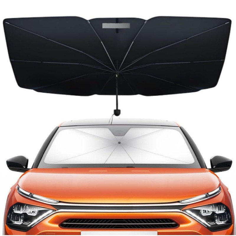 Umbrella Sun Protection for Car Window 125 x 65 cm with Pull Ring Reflective Coating Protects Against Heat Easy to Use - Titanium Silver