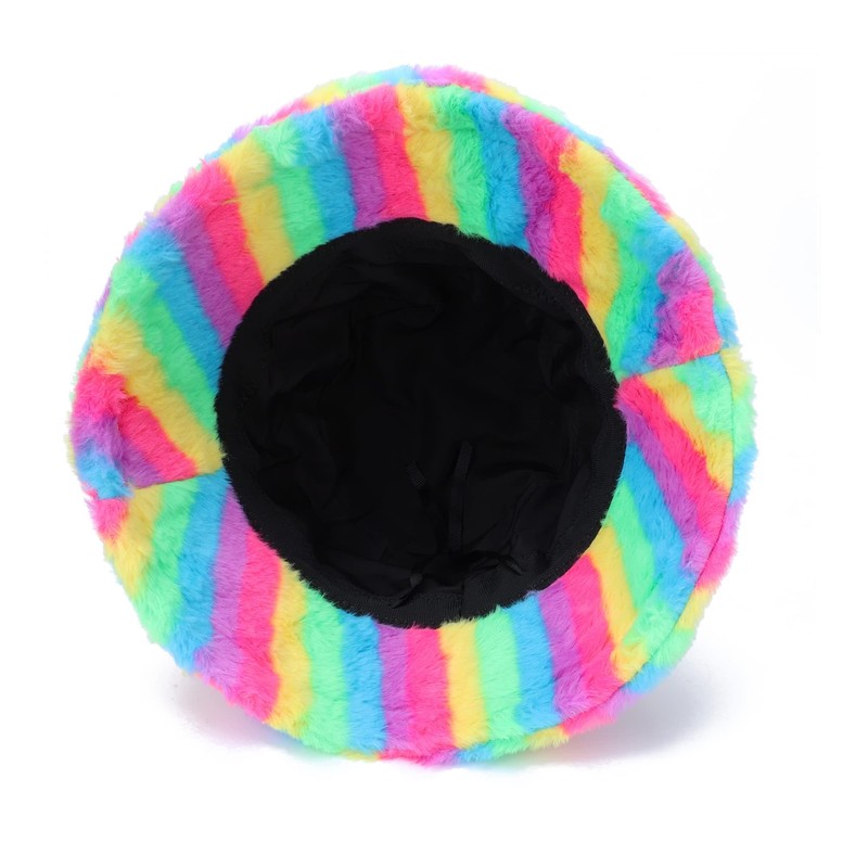 Umeepar Winter Faux Fur Fuzzy Bucket Hat Fluffy Warm Hat for Women Men (Colorful Rainbow Stripes)