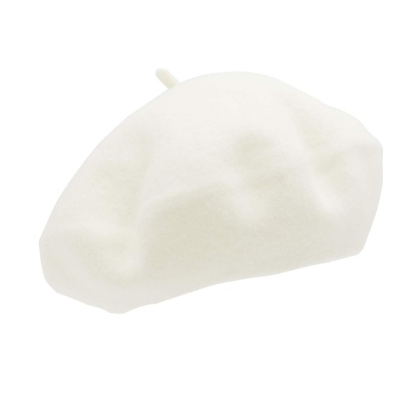 Umeepar Wool French Beret Hat Solid Color Winter Hat for Women (White)