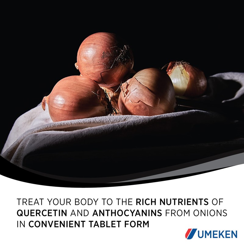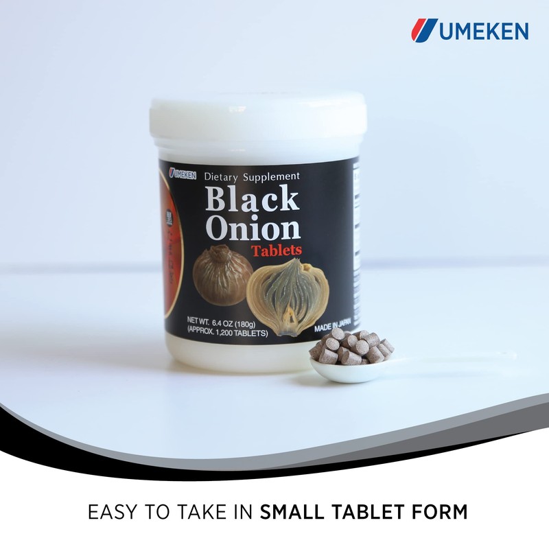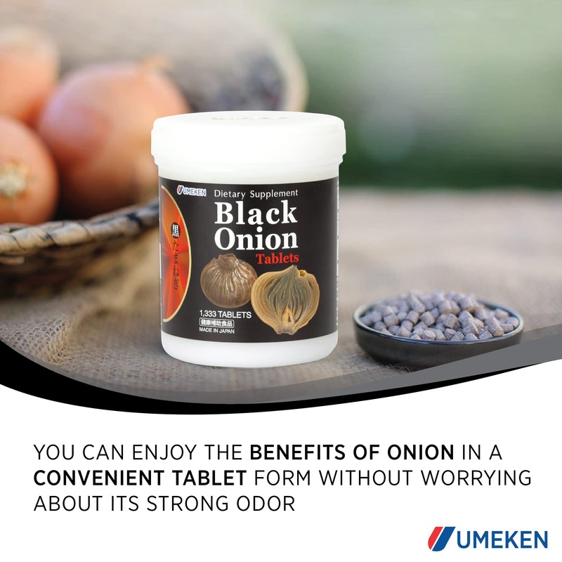 | Put the Power of Onion to Work for You |To create Umeken Black Onion, fresh onion cultivated in Japan is carefully selected and undergoes a special month-long transformational fermentation process. The black onion is maintained under strictly-controlled temperature and humidity levels to ensure its quality and potency until it reaches maturity. This time-intensive process is necessary in order to achieve the remarkable health benefits that black onion provides. Umeken then uses advanced technology to extract the black onion into a convenient tablet form, concentrating the extract to make it an even more powerful health supplement.| The health benefits of onion are no secret |Black onion shares many of the same amazing health benefits as raw onion, but black onion has a higher concentration of antioxidants, polyphenols, cyclo allicin, and amino acids. In addition, black onion does not have the strong or offensive odor as that of raw onion.Directions for use: For the best results, take 20 tablets of black onion at any time of the day. Umeken Black Onion is made in Japan according to the strictest standards.FDA Disclaimer: The statements made regarding these products have not been evaluated by the Food and Drug Administration. This product is not intended to diagnose, treat, cure or prevent any disease. All information presented here is not meant as a substitute for or alternative to information from healthcare practitioners. Please consult your healthcare professional about potential interactions or complications before using any product.