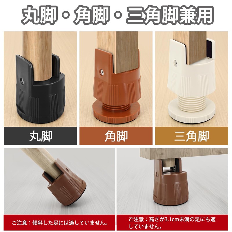 (Compatible Leg Size) Round feet with a diameter of within 2.0 inches (5 cm), square legs with shorter sides of 2.0 inches (5 cm), triangle legs with a height of less than 2.0 inches (5 cm). *Note: Not suitable for inclined feet, feet with a height of less than 1.2 inches (3.1 cm).