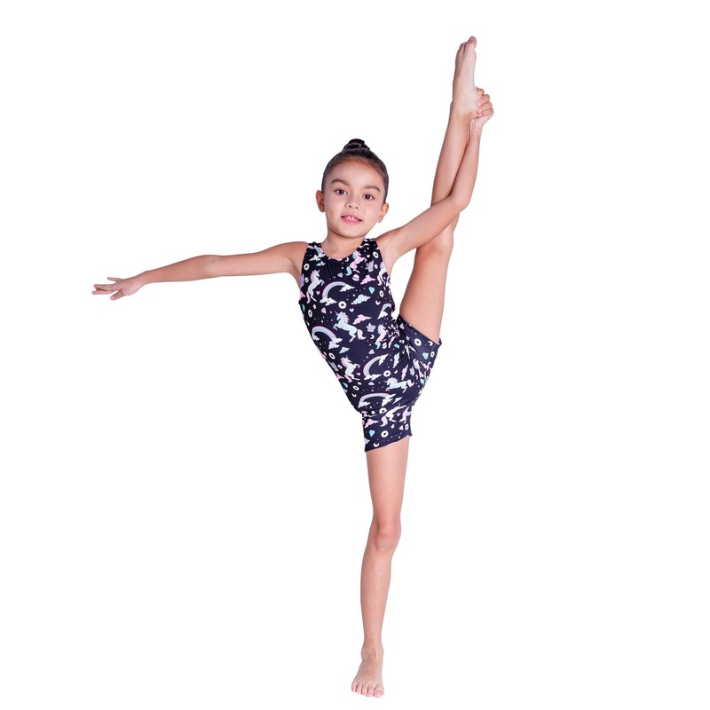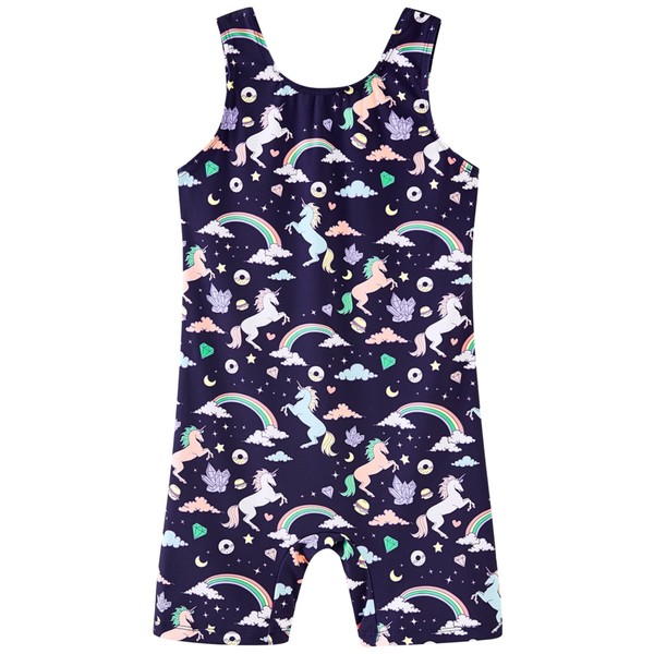 UMELOK Girls Gymnastics Leotards One Piece Shorts Sleeveless Biketards Kids Dance Outfit Blue unicorn,6-7Years
