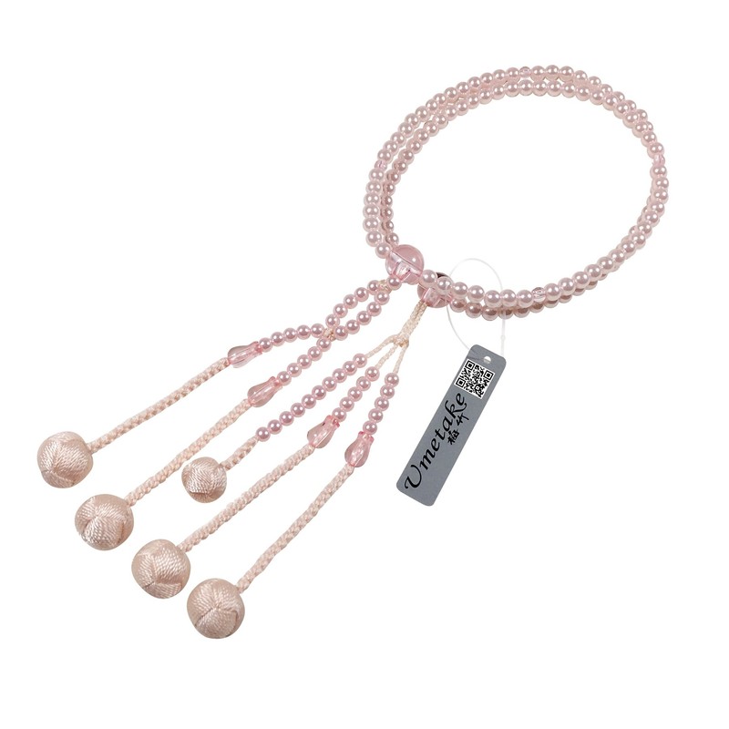 Umetake梅竹 8寸女性用 創価学会数珠 ピンクPCパール ピンク アクリル水晶入り ピンク小田巻梵天