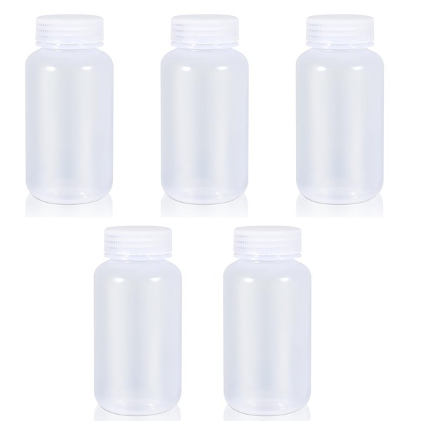 UMETASS PP Wide Mouthed Laboratory Reagent Bottle, Laboratory Quality Chemical Container, Sealed Leak-proof Transparent Bottle, Pill Bottle, Water Sample Bottle (Transparent, 250 ml)