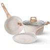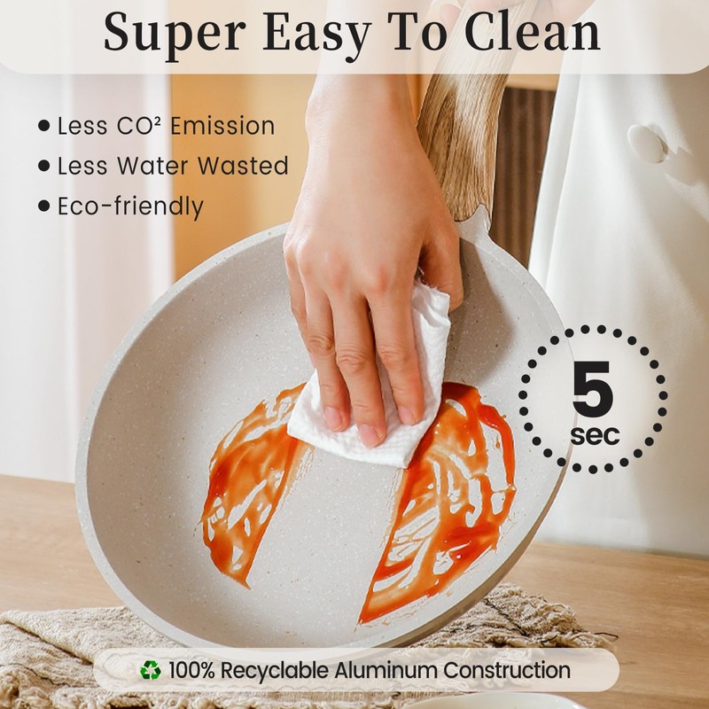 - 【Eco-friendly Non-Stick Granite】Our cookware set interior is coated by non-stick granite coating. Require less oil or butter for cooking and minimal scrubbing for a spotless clean, giving you a healthier and more enjoyable at-home cooking experience.