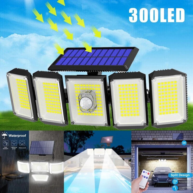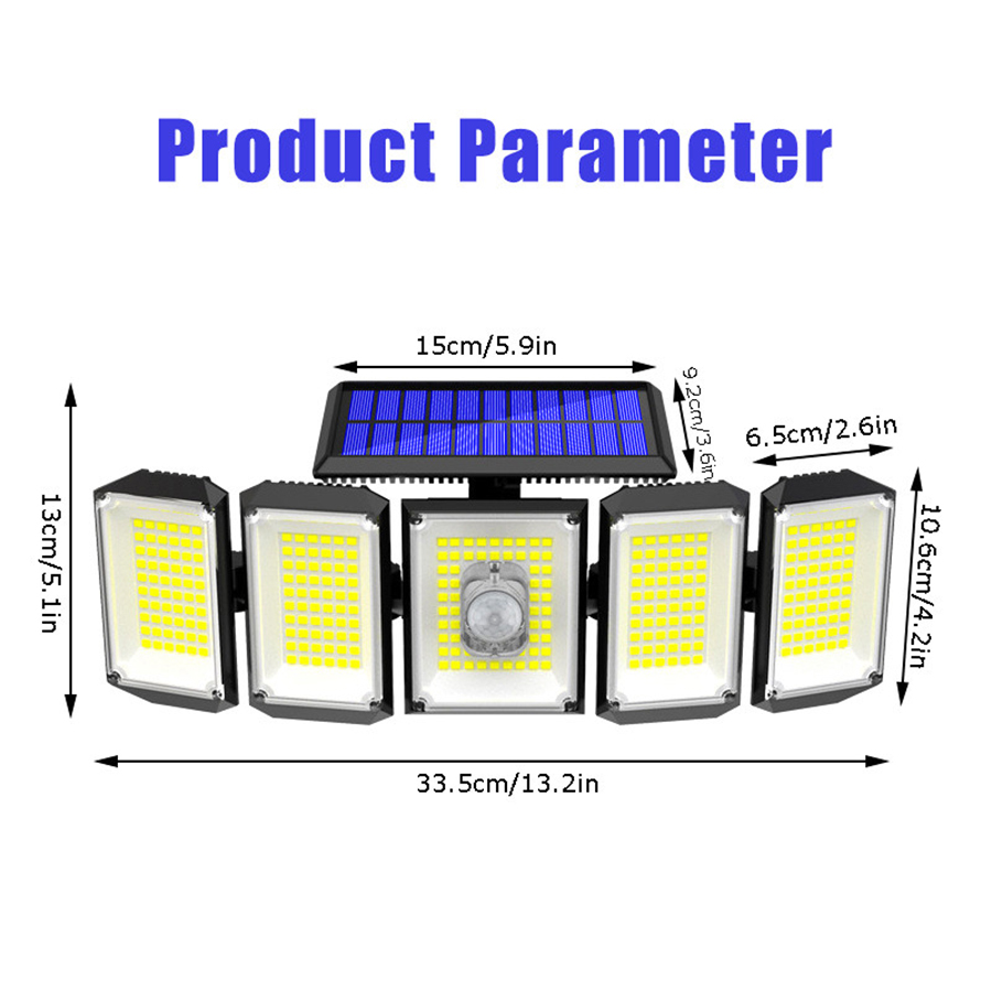Wide Lighting Area & 300 High-end LED Chips: This flood lights equipped with 5 rotatable heads(total 300 high-end LED chips), which could freely adjust the illumination angle of the lamp to be 360° wide angle, capable of covering a wide span 350sq ft illumination area.